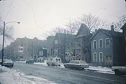 the 1500 block of north Sedgwick street circa 1966. The apartments can be seen in the left of the image, and have been renamed to 'Old Town Gardens'