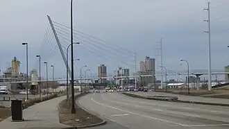 The Martin Olav Sabo Bridge viewed from the south, from around 28th Street.