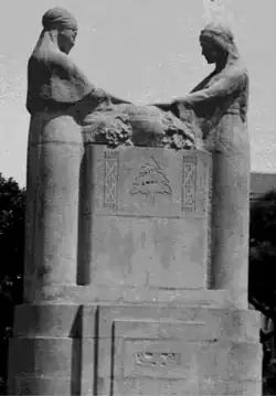 In 1930, during the French Mandate, the first commemorative sculpture was erected on the square in memory of Lebanese nationalists who were hanged during World War I by the order of Ottoman military ruler Djemal Pasha. The original monument (right) by Youssef Hoyek represented two women, a Muslim and a Christian, holding hands in a symbolic gesture over an urn that represented their martyred children' ashes. Hoyek carved on their chests stylized shahada (لا إله إلا الله) and a small cross respectively.