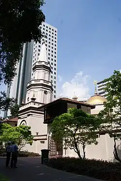 The Hajjah Fatimah Mosque (Malay: Masjid Hajjah Fatimah; Jawi: مسجد حاجة فاطمة; Arabic: مَسْجِد ٱلْحَاجَّة فَاطِمَة, romanizedMasjid Al-Ḥājjah Fāṭimah) is a mosque located along Beach Road in the Kampong Glam district within the Kallang Planning Area in Singapore. The mosque was designed in a mix of Islamic and European architectural styles, and completed in 1846. The mosque is named after an aristocratic Malay lady, Hajjah Fatimah, who commissioned its construction.[1]