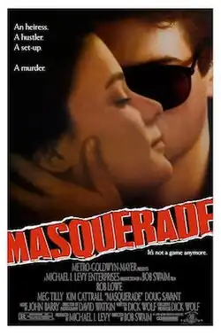 Masquerade is a 1988 American neo-noir film[6][7][8] directed by Bob Swaim and starring Rob Lowe, Meg Tilly, Kim Cattrall, and Doug Savant. Written by Dick Wolf, the film is about a recently orphaned heiress in the Hamptons who falls in love with a young yacht racing captain who is not completely truthful with her about his past.