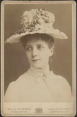 Millett was born in Rajanpur (now in Pakistan, but then part of India), the daughter of Colonel Hugh Millett and his wife Julia, née Childs.[1] She made her first appearance on the stage at the old Novelty Theatre in 1884, and as a result she was engaged by Charles Hawtrey for the part of Eva Webster in The Private Secretary, which was then running at the Globe Theatre.[2] Two years later she appeared with Kate Vaughan at the Gaiety Theatre. When George Alexander moved from the Avenue Theatre to the St James's at the end of 1890 she was a member of his company, playing Kate Merryweather in C. Haddon Chambers's The Idler and Blanche Ferraby in R. C. Carton's Liberty Hall.[3] When Alexander staged the first production of The Second Mrs Tanqueray (1893), she played Ellean to the Paula of Mrs Patrick Campbell.[4]