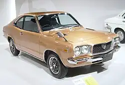 The Mazda Grand Familia (Japanese: マツダ・グランドファミリア, Matsuda Gurando Famiria) is an automobile which was produced by Mazda in Japan from 1971 to 1978. It was sold as the Mazda 808 in some export markets including Asia, Australia, and New Zealand, and as the Mazda 818 in many others - this was mostly due to Peugeot having trademarked three-digit numbers with a middle zero in many markets. The body style configurations offered were a two-door coupé, a four-door sedan, and a five-door station wagon. The Grand Familia offered only inline four cylinder engines. The largely identical rotary-powered versions were marketed as the Mazda Savanna (マツダ・サバンナ, Matsuda Sabanna) in Japan, with export markets taking this model as the Mazda RX-3.