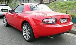 The NC featured exterior styling by Yasushi Nakamuta sharing no components with the NB, except for the fender-mounted turn signal lights on non-U.S. models, and rear differential internals. The chief designer of this model generation was Moray Callum.[2][5][6] The 2003 Mazda Ibuki concept served as a preview of the new model.[7] The suspension changed from a four-wheel double wishbone setup to a front wishbone/rear multilink setup, shared with the Mazda RX-8. NC models featured traction control and stability control. According to Car and Driver, the NC has a skidpad number of 0.90g.