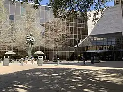A statue titled "The Family Group" by sculptor, and former UT College of Fine Arts professor, Charles Umlauf sits in the middle of McCombs Plaza at the southern entrance of the GSB Building.[14]