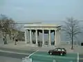 Richardson retired in 1921 after a disabling accident and Fenner died in 1926. Teunis Jacob van der Bent (1862 – 1936), a partner since 1909, took over Fenner's management role and died a decade later. Kendall gradually withdrew from the firm during the 1930s and died in 1941, leaving control of the firm with White and Smith.[27] The firm's design efforts after World War II may be summed up by the Mead Art Building (1949) of Amherst College, a memorial to Mead. Mead and his wife had left a large sum of money to Amherst, his alma mater, for the construction of an art gallery.[28][29] The new building was assigned to Smith, who was college architect and another alumnus. According to Blair Kamin, at this point Smith and his firm "were struggling with the challenge[s] posed by...modernism," resulting in a building which attempts gamely to meld Beaux-Arts and modernist principles but fails at both.[30] Shortly before White's death in 1956, he won for the firm the National Museum of American History (1964) in Washington, DC. His grandson, architect Samuel White, described the commission as "[h]is personal Mount Everest."[31] The museum, among the final works initiated under the name McKim, Mead & White, was designed principally by Smith and Walker O. Cain. Here as at Amherst they attempted to meld traditionalism and modernism with little success. Martin Moeller, then curator of the National Building Museum, described it as "neither convincingly modern nor credibly neoclassical."[32]