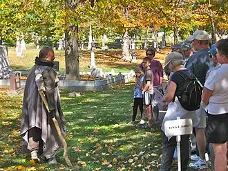 Since 1995, the Museum has hosted the Evergreen Cemetery Walk. Each year, local professional actors portray a variety of individuals who lived in McLean County, bringing their diverse stories to life.[12] In addition to actor representations, the tour includes information about cemetery art and architecture, history of Evergreen Memorial Cemetery, and the history of burial and funerary practices.[13]