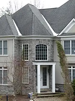 McMansions often mix a variety of different architectural styles and elements, combining quoins, steeply sloped roofs, multiple roof lines, complicated massing, and pronounced dormers, to produce an appearance that may be considered unpleasant, jumbled, or messy.[10]