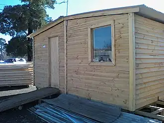 Mediagua, is the name given in Chile to a type of prefabricated house, constructed of wood panels, which can be erected in less than a day. The traditional model has an area of 18 square metres (190 sq ft).