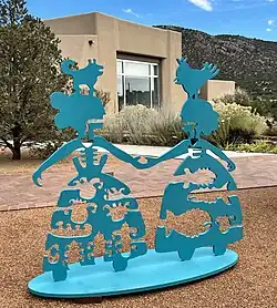 Melanie A Yazzie aluminum sculpture Making New Friends at the Wheelwright Museum in Santa Fe, New Mexico photo: Glenn Green Galleries