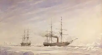 View of two ships in Melville Bay by Edward Augustus Inglefield.