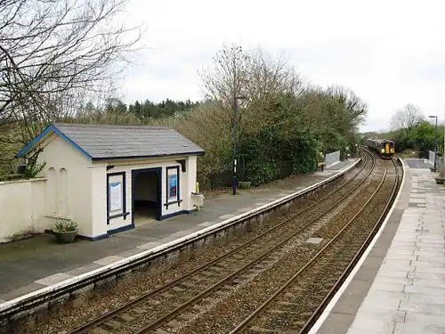 The Cornwall Railway was amalgamated into the Great Western Railway on 1 July 1889. The Great Western Railway was nationalised into British Rail from 1 January 1948 which was privatised in the 1990s. Under British Rail the staff were removed from the station. For a few years the station was only served on request,[5] but since December 2020 services have stopped without request.[5][6]