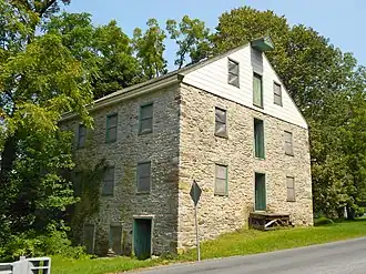 This complex consists of a 2+1⁄2-story, stone banked mill with tin roof (1854), a 2+1⁄2-story, stone Georgian-style manor house (1767), a large stone and frame barn with banked earth ramp (c. 1850), a one-story smokehouse with slate roof (c. 1767), a 1+1⁄2-story stone summer kitchen (c. 1767), a clapboarded, frame privy (c. 1939), a storage shed (c. 1939), and the millraces, dam, and pond. The mill, which ceased operation circa 1939, was built as part of a working farm.[2]
