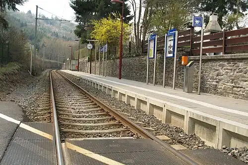 Merkholtz railway station (Luxembourgish: Gare Mäerkels, French: Gare de Merkholtz, German: Bahnhof Merkholtz) is a railway station serving Merkholtz, in the commune of Kiischpelt, in northern Luxembourg. It is operated by Chemins de Fer Luxembourgeois, the state-owned railway company.