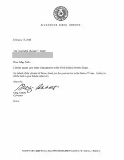 4. ^ "State Commission on Judicial Conduct- Michael Seiler Public Reprimand" (PDF). scjc.texas.gov. Retrieved July 8, 2016.