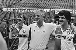 ![]() Johan Cruyff, Thijs Libregts, and Michel van de Korput in 1983 after joining Feyenoord | |||