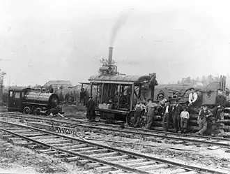 The Detroit and Mackinac Railway opened its Rogers City Branch in 1911.[31] Service inside the mine dates back to before 1926. Pictures indicate that the yard was originally serviced by company-owned switching engines.[32] Trackage included switches and even two interlocks inside the plant which date back to 1926.[33] The railroad for the quarry is currently serviced by Lake State Railway, successor to the D&M.