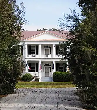 Midway Plantation is a historic plantation house located near Fort Motte, Calhoun County, South Carolina. The original Midway plantation was built about 1785, although little of this structure remains. The present façade was added about 1859, and is a two-story antebellum frame building with both Greek Revival and Federal influences. The front façade features a pediment and a two-tiered portico with four Tuscan order columns on both levels. The rear wing and porch were added around 1900.[2][3]