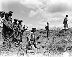 Mortar squad of K Co., 3rd Bn., 15th Regt., Philippine Army. Narvacan, Ilocos Sur, Luzon 3 April 1945