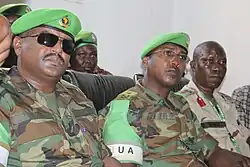 Brigadier General Odowaa Yusuf Rageh wearing the Khaki Infantry Beret and rank slide