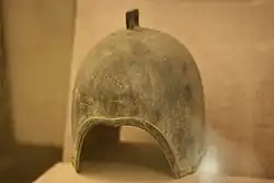 A Chinese soldier's bronze helmet, from the State of Yan, dated to the Zhou dynasty.
