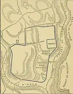 In the Books of Samuel, Millo is mentioned as the boundary of David's construction while building up the City of David after the capture of Jerusalem from the Jebusites.[4] The New King James Version identifies Millo as literally "The Landfill",[5] while the New International Version translates it to "supporting terraces".[6]