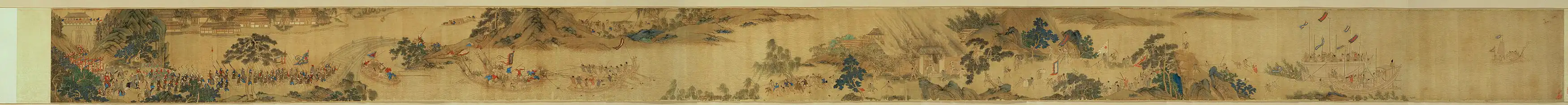 After the period of maritime activity during the treasure voyages under the Yongle Emperor, the official policy towards naval expansion swayed between active restriction to ambivalence.[36] Despite Ming ambivalence towards naval affairs, the Chinese treasure fleet was still able to dominate other Asian navies, which enabled the Ming to send governors to rule in Luzon and Palembang as well as depose and enthrone puppet rulers in Sri Lanka and the Bataks.[38] In 1521, at the Battle of Tunmen a squadron of Ming naval junks defeated a Portuguese caravel fleet, which was followed by another Ming victory against a Portuguese fleet at the Battle of Xicaowan in 1522. In 1633, a Ming navy defeated a Dutch and Chinese pirate fleet during the Battle of Liaoluo Bay. A large number of military treatises, including extensive discussions of naval warfare, were written during the Ming period, including the Wubei Zhi and Jixiao Xinshu.[40] Additionally, shipwrecks have been excavated in the South China Sea, including wrecks of Chinese trade and war ships that sank around 1377 and 1645.[41]