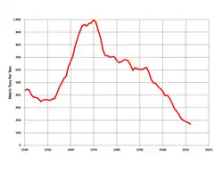 By the 1970s, South Africa accounted for over two-thirds of global gold output, with production peaking at over 1,000 tons.[21]