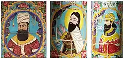 Additionally, his tile panels incorporated pre-Islamic Iranian imagery, such as the investiture of the founder of the Sasanian Empire, Ardashir I (r. 224–242), and battle scenes featuring the mythological Iranian hero Rostam. He also produced portraits of Qajar rulers, noblemen, and commoners, showcasing his ability to depict both royal grandeur and everyday life.[12]
