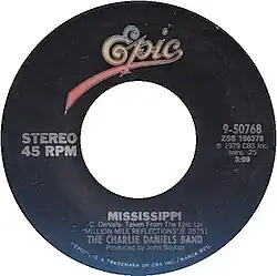 "Mississippi", is a song written by Charlie Daniels and first released on the Charlie Daniels Band's 1979 album Million Mile Reflections. It was also released as a single in September 1979 as the follow-up to "The Devil Went Down to Georgia." It reached the top 20 on the country singles charts in both the U.S. and Canada.