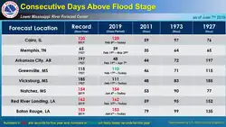 Flood duration records and current duration of flooding along the Lower Mississippi River as of 7 June 2019
