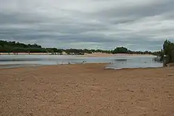 The river's watershed covers an area of 71,757 km2 (27,706 sq mi).[2] The Mitchell has the state's largest discharge,[7] at 11.3 million megalitres (2.5×1012 imp gal; 3.0×1012 US gal) annually, but is intermittent and may be dry for part of the year. Lake Mitchell is the main water storage facility on the river.[8]
