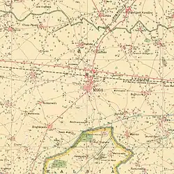 In July 1947, 80,000 ruppees were collected from the Moga grain market to purchase weapons to be used against local Muslims of Moga.[25] Furthermore, an Akali martyr squad named Khalsa Sewak Dal was organised.[25] The Hindu organisation, Rashtriya Sawayamsevak Sangh (R.S.S.), also made a resolve against the Muslims of Moga.[25] A local Muslim League leader named Sukh Annyat hired trucks and left the city with property and family.[25] However, his brother Hadayat Khan was murdered in the violence of partition by the son of an RSS leader named Lala Ram Rakha Sud, who was in-charge of the local RSS outfit.[25] On 2 August 1947, six Muslim mendicants were murdered near the Ludhiana-Moga railway line, with the deceased victims being accused of being bomb-makers.[26] Curfew was put in-place on 17 August 1947, however by 23 August 1947, there were reportedly no Muslims to be found any longer in Moga town and the surrounding villages, with the former Muslims having fled as refugees over the Radcliffe Line into Western Punjab.[27] When Robert Atkins visited Moga town during the partition of India, he recounts that he witnessed mutilated bodies strewn over the town resulting from a massacre that occurred there.[28] Moga was one of the regions of the Punjab that had experienced heavy losses in human lives and property during the partition.[29]
