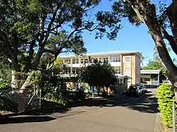 The 1960s was a period of growth at the school. Enrolments rose from 700 to 1000 between 1967 and 1970, although later fell back to 700 by 1976.[66] Further buildings were added to the school during the 1960s and 1970s, along with a swimming pool in 1963. An east-west retaining wall was built south of Block A in the late 1960s, and the retaining wall to the northwest of Block A was extended to Sherley Street at the same time.[67] Staff toilets were added to the west end of the ground floor of Block D c. 1968, and a library (Block L) was built south of the east end of Block D in 1977. Meanwhile, the converted army hut was removed from the grounds c. 1958, and the temporary classrooms blocks between 1972 and 1974.[68][69][1]
