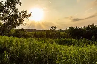 The McHenry dam was constructed in 1907 on the Fox River near McHenry, Illinois. The dam was donated to the state in 1924 and a new dam was built in 1934. McHenry Dam State Park was founded in 1939 with the purchase of 15 acres (6.1 ha) of land on the east bank of the river. Property on the west bank of the river was donated to the state Division of Water Resources in the early 1960s. In 1971, the state began to acquire land surrounding Lake Defiance, then constructed park facilities in 1975. Renamed Moraine Hills State Park, the park was opened to the public in October 1976.[1]