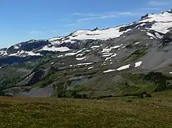 According to the A. W. Kuchler U.S. Potential natural vegetation types, Mount Rainier National Park has an Alpine Meadows & Barren, or Alpine tundra (52) potential vegetation type with an Alpine Meadow (11) potential vegetation form.[22] The park's vegetation is diverse, reflecting the varied climatic and environmental conditions encountered across the park's 12,800-foot elevation gradient. More than 960 vascular plant species and more than 260 nonvascular plant species have been identified in the park.[5]