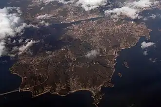 Mukaishima Island (向島, Mukaishima) is the northernmost island in the Geiyo Islands chain accommodating Nishiseto Expressway connecting Honshu and Shikoku islands. Its coasts are washed by Seto Inland Sea. The island's highest peak is Takamiyama (高見山) 283.2 m (929 ft) high.