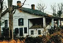 Mulberry Island was a large plantation located along the Dan River in Rockingham County, near Stoneville and Leaksville.[1] The house was built by Nathaniel Scales (1756–1824) and his wife, who was a niece of Colonial Governor Josiah Martin.[1] It faces south, looking down on the river valley.[1] The plantation sat on 1,298 acres.[1] Scales left Mulberry Island to his son, Alfred Moore Scales, upon his death.[2] It adjoined Deep Springs Plantation on the Dan River, which was home to another one of Nathaniel Scales' sons, James Madison Scales.[2] Nathaniel Scales' daughter inherited another nearby farm, High Rock Farm.[2] In the 1850s the plantation came into the Settle family.[1] It was the home of North Carolina Supreme Court Associate Justice and United States Minister to Peru, Thomas B. Settle II.[1][2] After the Settles, the plantation was owned by the Trogden family and then by John Moore.[1] In 1930 the farm was purchased by Charlie Penn of Reidsville, North Carolina who remodeled the house, adding a large porch and other additions.[3][2] Edrington Penn sold the home to Horner Grogan, who leased it to his son Wendell Grogan.[1] The Grogan family sold the plantation to Charles Stone of Kinston for $130,000.[1]