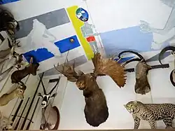 The museum houses hundreds of trophies and taxidermied animals from Europe, Africa, Asia and America. These include a polar bear, lion, tiger, cheetah, fox, rhinoceros, bison, water buffalo and many birds. In the Room of Trophies, Le Souillot, a wall-mounted animatronic albino boar head by contemporary French artist Nicolas Darrot, speaks to museum visitors in French.[19][20]