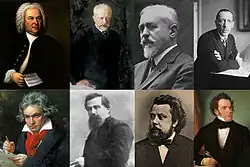 The music for the 1940 animated musical anthology film Fantasia consisted of eight orchestral suites from Johann Sebastian Bach, Pyotr Ilyich Tchaikovsky, Igor Stravinsky, Ludwig van Beethoven, Franz Schubert, named as different segments in the film. The orchestral portions were conducted by Leopold Stokowski and performed by the Philadelphia Orchestra.
