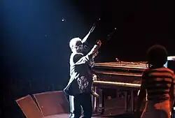 The hard rock and heavy metal genres were developed from blues-rock in the late 1960s and early 1970s, largely in England and the United States.[10] Played louder and with more intensity, it often emphasised the electric guitar, both as a rhythm instrument using simple repetitive riffs and as a solo lead instrument, and was more likely to be used with distortion and other effects.[11] Key acts included British Invasion bands like The Who and The Kinks, as well as psychedelic era performers like Cream, Jimi Hendrix Experience and The Jeff Beck Group.[11] Adopting a form of boogie rock, Status Quo became one of the UK's leading rock bands throughout the rest of the 1970s.[12]