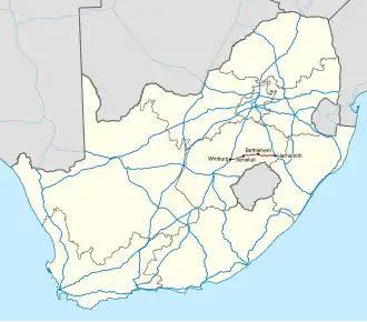 1. ^ a b c d e Falkner, John (May 2012). South African Numbered Route Description and Destination Analysis (Report). National Department of Transport. p. 18. Archived from the original on 6 June 2014. Retrieved 12 August 2014.