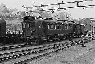 The first multiple units used on the Voss Line was a Class 1 units, which had been delivered in 1923. The next class of multiple units was Co-m Class 3. The three units were built by Skabo in Oslo, using a transmission system from Triebwagenbau-Aktiengesellschaft and a prime mover from Deutsche Werke. The bodies were built by Skabo and received a similar design to the electric Class 62. The series was delivered on 6 March, 13 April and 7 June 1932, respectively.[1] The trains were numbered 18236 through 18237.[2]