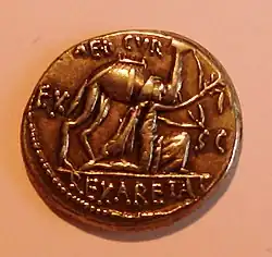 Aretas III on a Roman coin, depicted in a pose of submission