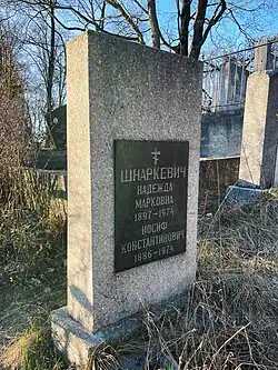 Nadzeja Sznarkiewicz was born on 12 October 1897 in Brest, Russian Empire (now Belarus). After her father died in 1904, she and her mother moved to the village of Wostrawa, near Kobryn, and later to Pruzhany. She graduated from the women's gymnasium in 1914 and then qualified as a teacher five years later, although she'd been working as a teacher after graduating. She fled the advancing German troops in mid-1915, and returned four years later. After the Russo-Polish War of 1920–21, the victorious Poles incorporated western Belarus into Poland and pressured the Belarusians to adopt the Polish language. Sznarkiewicz moved to Wilno, Poland (now Vilnius, Lithuania), in 1925 where she worked for the Wilno Belarusian Gymnasium. She was active in the Belarusian School Association which promoted Belarusian language and culture. She married Jazep Sznarkiewicz, a political activist and teacher, in 1926. Sznarkiewicz was crippled by paralysis for the last quarter century of her life, but nonetheless remained active before dying on 21 May 1974.[1]