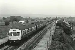 In 1982, a British Rail Class 101 DMU departs Nailsea & Backwell with a service for Cardiff.
