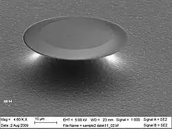25. ^ Shomroni, Itay (2009-08-02), English: It's a SEM picture of a microdisk resonator, about 40 um diameter, in order to create a toroid there needs to be a CO2 reflow. Later it can be used as an optical whispering gallery modes resonator., retrieved 2021-03-02