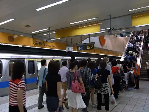 This four-level,[3] underground station has an island platform and four exits.[4] The area above the ground is currently being developed into a new high-rise building.[5]