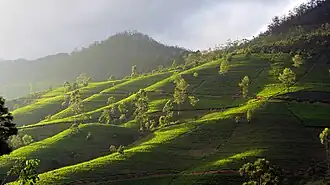 Nanu Oya is a 27 km (17 mi) long stream in the Central Province of Sri Lanka. It originates at an elevation of over 2,000 m (6,562 ft) on Pidurutalagala, the highest mountain in Sri Lanka, flowing into the Kotmale Oya at an elevation of approximately 1,200 m (3,937 ft). The Kotmale Oya is a tributary of the Mahaweli River, the longest river in Sri Lanka, which finally discharges at Trincomalee after a combined distance of nearly 350 km (217 mi). The river was dammed in 1873 to create the popular Lake Gregory in Nuwara Eliya.[1][2] The Nanu Oya discharges into the Kotmale Oya 2.5 km (1.6 mi) upstream of the Upper Kotmale Dam.