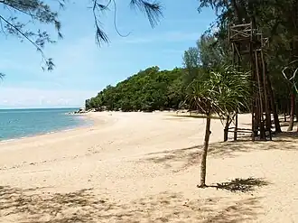 Narathiwat province is on the Gulf of Thailand, on the Malay Peninsula. The Bang Nara is the main river and enters the Gulf of Thailand at the town of Narathiwat. Narathat Beach, the most popular in the province, is near the estuary. The total forest area is 1,196 km2 (462 sq mi) or 26.6 percent of provincial area.[1]